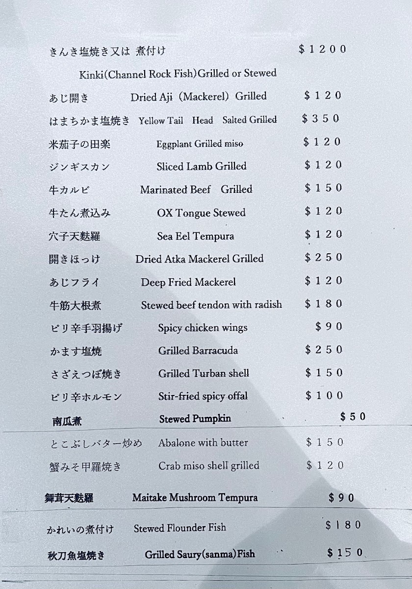 For grill and stew lovers, the menu includes several savory options. The Katsu Wagyu Burger (吉列和牛漢堡) is a standout for those seeking a rich, juicy bite, while the Katsu Fried Large Shrimp (吉列炸大蝦 2pcs) provides a crunchy, delightful texture. The Grilled Hamachi Kama (鹽燒油甘魚鮫) is perfect for anyone who enjoys a smoky, savory flavor, as is the Grilled Pacific Saury (塩焼秋刀魚), which is a classic choice for grilled fish lovers.